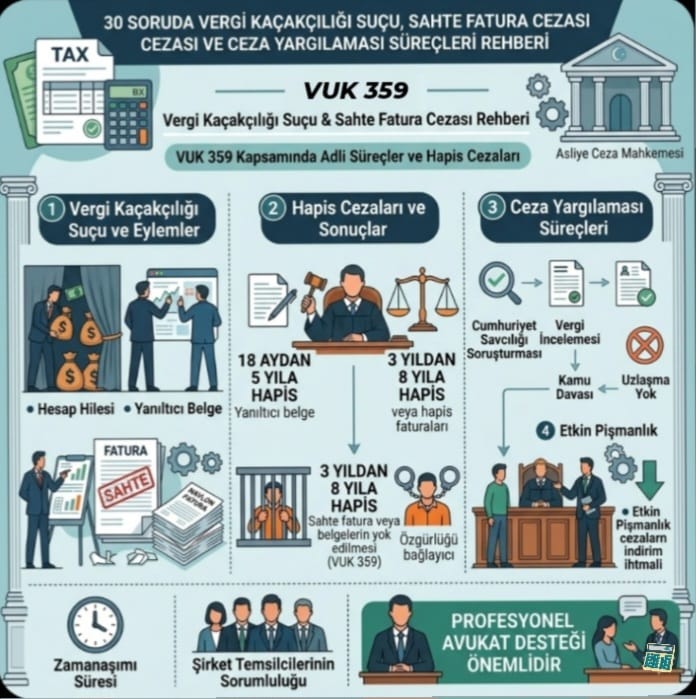 Özellikle sahte fatura düzenleme, naylon fatura kullanma suçu, defter gizleme veya yanıltıcı belge kullanma gibi iddialarla başlayan bu zorlu sürecin hukuki boyutlarını, 213 sayılı Vergi Usul Kanunu (VUK) 359. maddesi çerçevesinde, güncel yargı kararları ve yasal değişiklikler ışığında 30 temel soruda detaylıca inceledik.